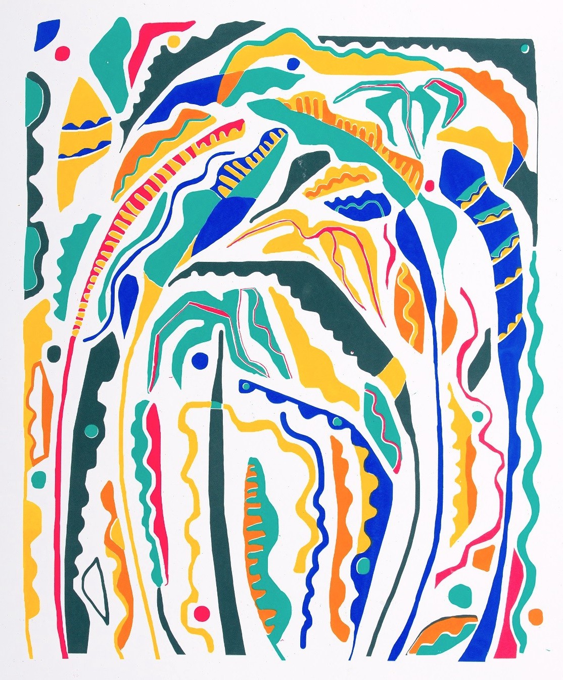 Flora Forshall is an artist printmaker based in Cornwall. She graduated with a BA in textile design from Falmouth University, where she specialised in print, producing large screen prints in repeat on fabric. She now makes limited edition screen prints on paper: bold, colourful, playful imagery. She is interested in a wide range of subjects and is inspired by the colours and shapes of the natural environment and the world around her. She creates images by experimenting with collage and painting before printing.