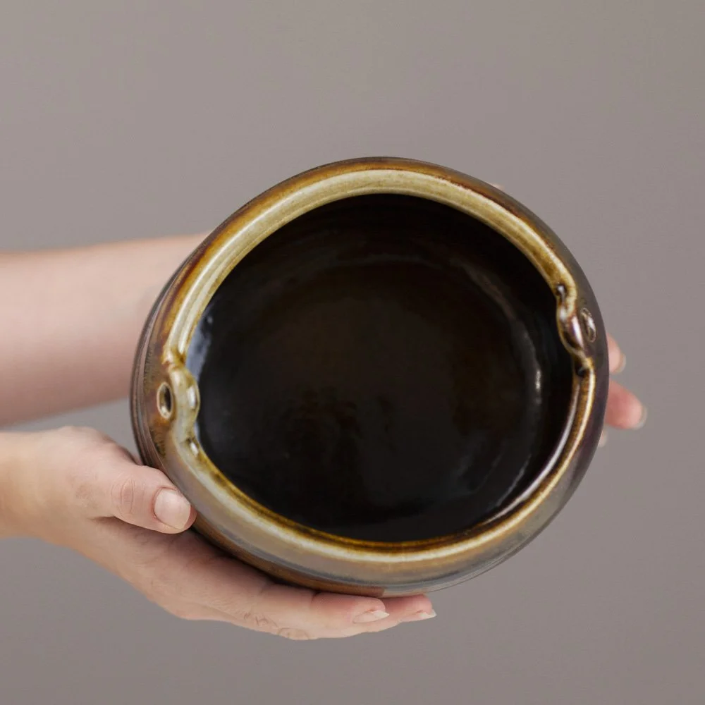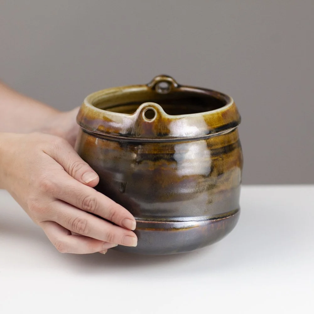 Functional objects are the main concern, pots made for use but also pots that nod to a past function, featuring remnants of utilitarian components now ultimately defunct but repurposed as decoration.