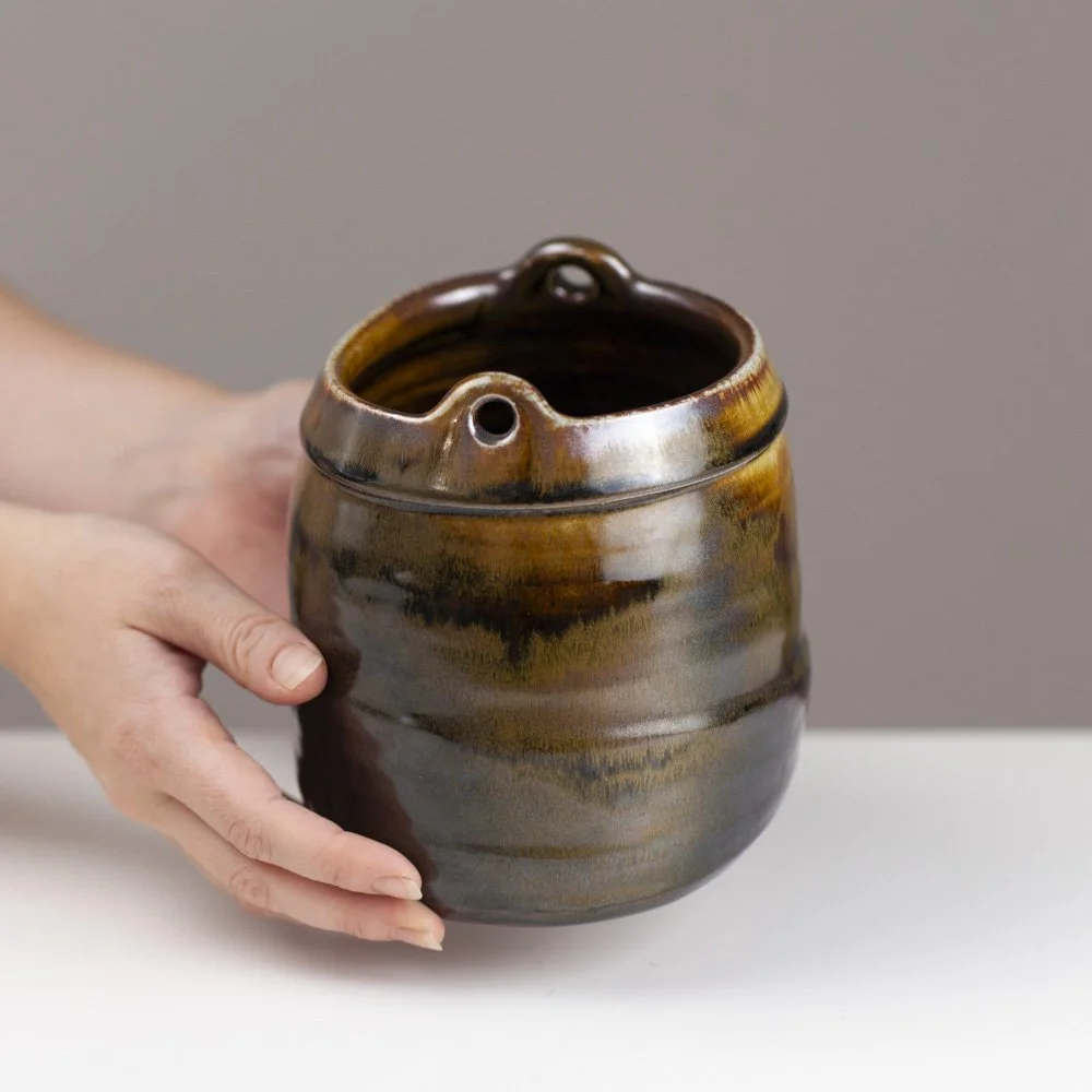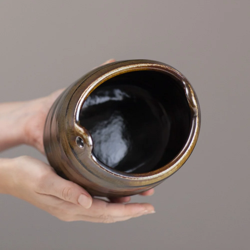 Functional objects are the main concern, pots made for use but also pots that nod to a past function, featuring remnants of utilitarian components now ultimately defunct but repurposed as decoration.