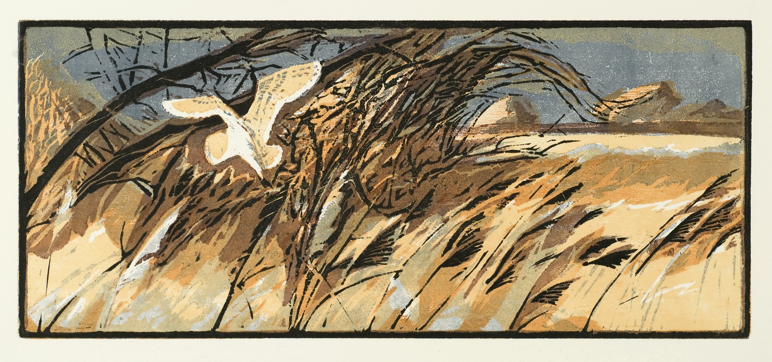 Robert was born in 1950 at Haywards Heath, Sussex, England. He studied at Eastbourne and Maidstone Colleges of Art, graduating in 1971 with a Diploma in Art and Design in Graphics. Robert works mainly in woodcut and oils. His earlier woodcuts were printed in black and hand-coloured with watercolour, whilst more recent ones involve the cutting and printing of a separate block for each colour. His subjects are mainly wildlife, domestic animals, and landscape. He places great emphasis upon observing and sketching in the field and his watercolours are frequently made directly from life. This approach lends a lively spontaneity and authenticity to the work, which is often difficult to achieve in the studio.