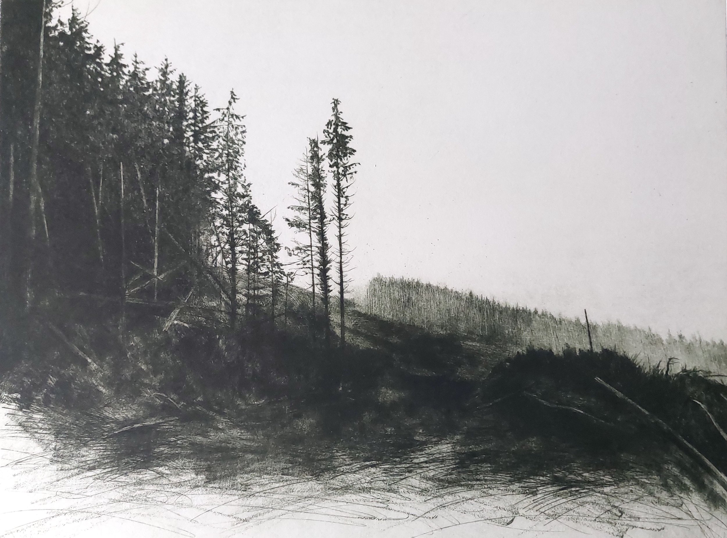 After studying at Belfast Art College in the early 1980s, Gregory graduated with a degree in Fine Art. It was during this time that he was introduced to printmaking and after a career in graphic design and teaching he was keen to start printing again. Over thirty years later he enrolled on a refresher etching course at The Glasgow Print Studio and shortly afterwards became a member. In 2017 Gregory won the Roy Wood prize for Excellence in Printmaking at the Royal Scottish Academy exhibition in Edinburgh.