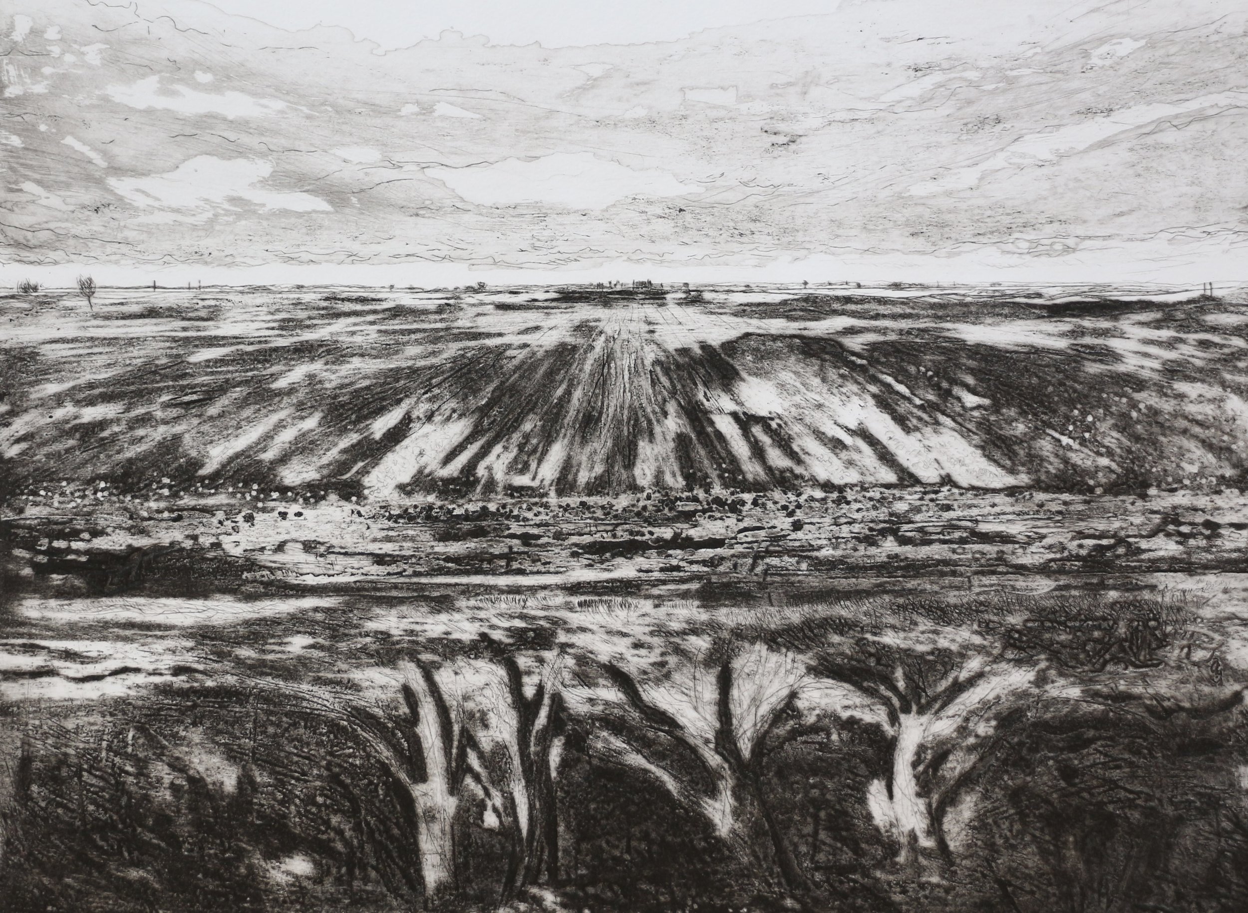 Iona Howard’s prints use figuration and abstraction to portray the landscape of places she knows well. The sources can come from working en plein air or expressing landscape filtered through memory. The physicality of her approach to the printing process combined with a contemplative exploration of surface makes the subject spontaneous and vibrant whilst capturing an intimate connection with the landscape. She has lived on the Fen Edge near Cambridge for the last twenty years and the focus of her work is the meeting point of land, horizon and sky, their flatness altering the perception of distance. Her prints have gradually evolved from monochromatic studies by introducing colour to reflect the Fens’ ever-changing mood and light.