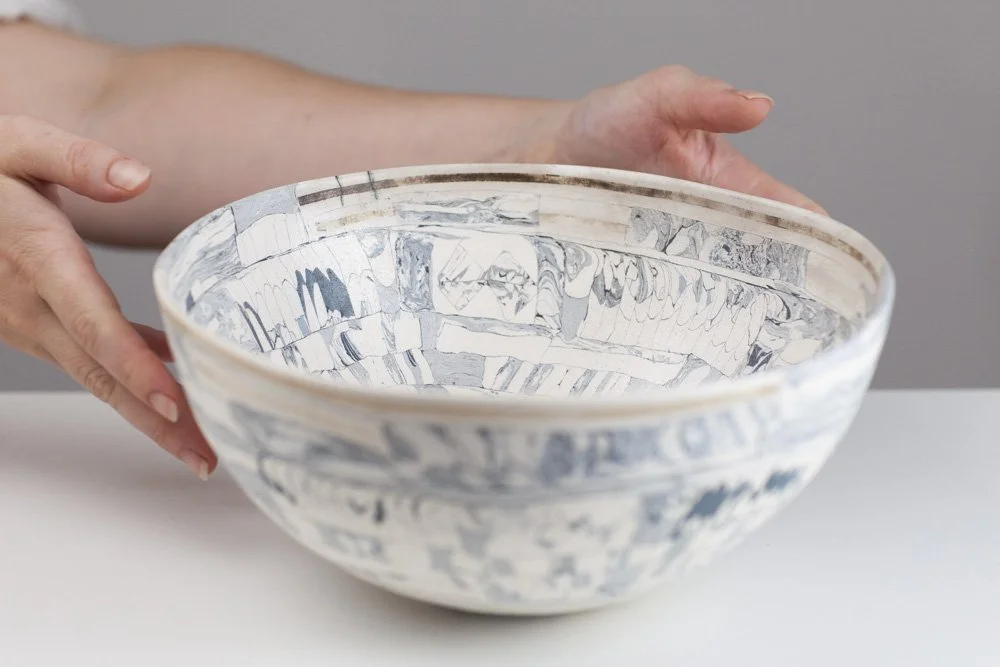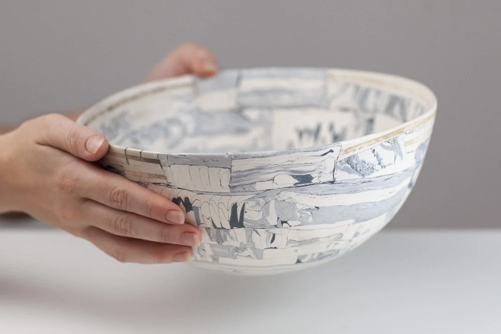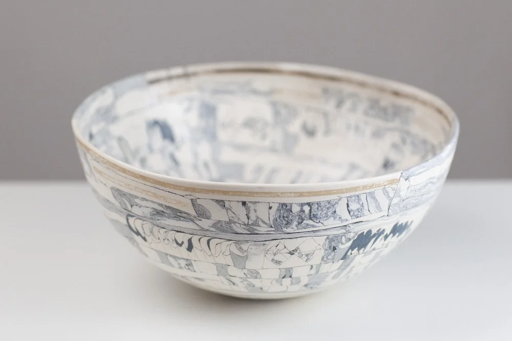 Barbara is a Brighton-based ceramicist, exhibiting across England. During her earlier career in the fashion industry as a designer and pattern cutter, she began to explore clay as an alternative medium to fabric. In fashion, the layering of textiles and the power of the cut merge to find new balances and forms, the biomorphic and geometric held in tension. Her work in clay continues to explore this. Barbara is fascinated by the geometry in nature. Growth and random chaotic forces skew and distort the initial perfect symmetry, leading to biomorphic and irregular forms. ”My ceramics explore the multi-layered effects nature creates via the laying down of strata, weathering and erosion. I endeavour to catch echoes of all this in my work whilst trying to embrace chance, the accidental and, as Henri Bergson said, the unforeseeable novelty.”
