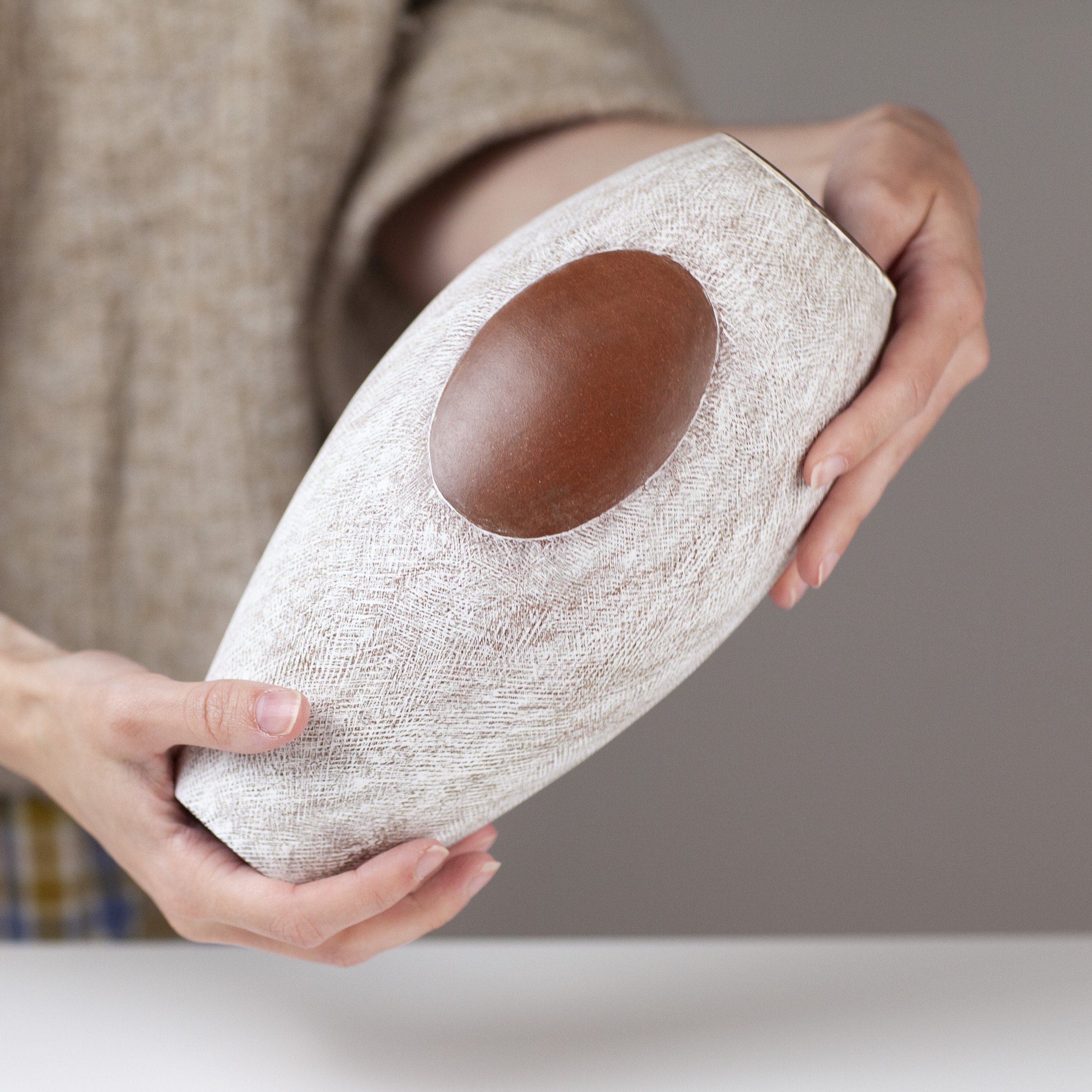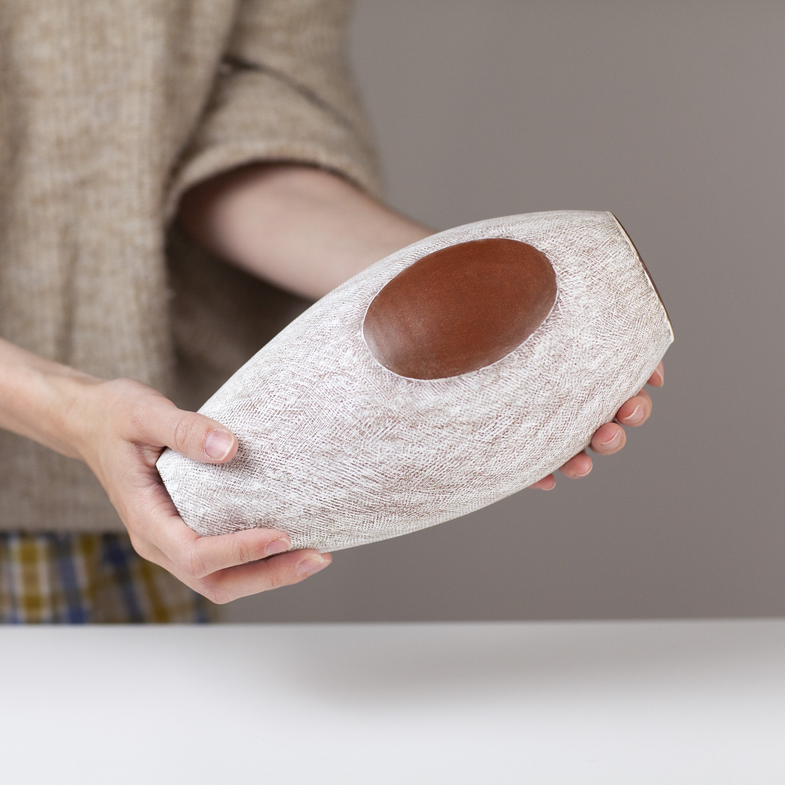 Emily is currently working with both porcelain and red stoneware clay. These contrasting clays provide the bright white, and chocolate brown backgrounds, on which the glazes react. The potter’s wheel is central to Emily’s studio practice, but extends her repertoire of forms by faceting, carving and altering the pots at the leather hard stage. She has developed a range of matt stoneware barium glazes. After graduating with a degree in Ceramics from Bristol Polytechnic in 1987, Emily returned to her home town of London, enjoying working within a shared workshop environment. A move to the countryside in the late 1990’s signalled a change in Emily’s work. Architectural influences gave way to organic ones. The rolling hills and ploughed furrows of North Hampshire were reflected in the carved lines within the pots. Inspiration was also drawn from found objects such as knapped flints and old metal cogs.