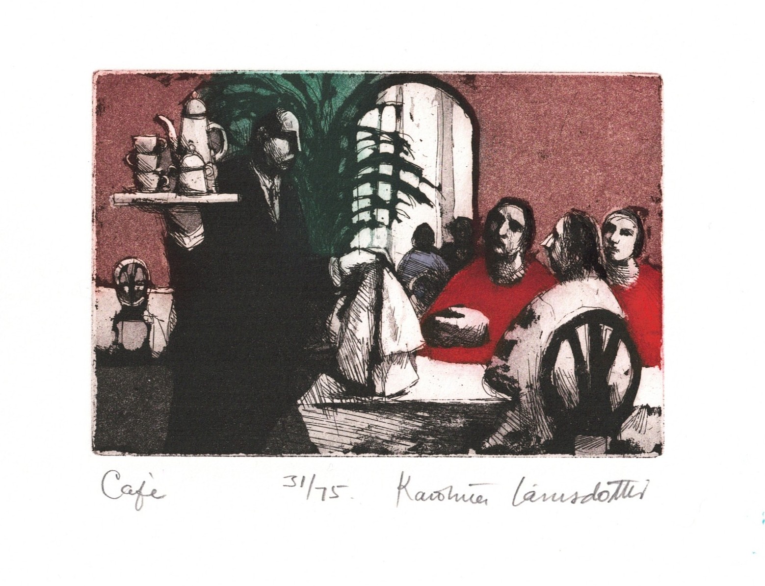 b.1944 – d.2019 Reykjavik, Iceland. Her watercolours, oil paintings and hand-made etchings are often inspired by her childhood in Iceland.