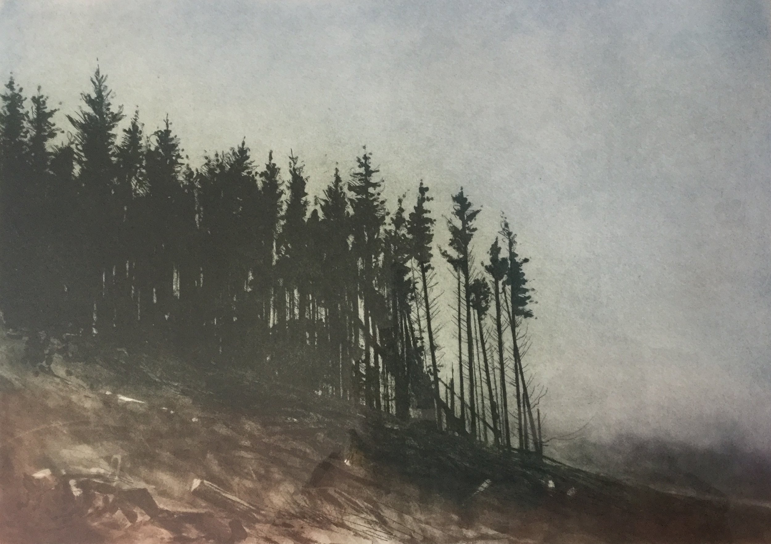After studying at Belfast Art College in the early 1980s, Gregory graduated with a degree in Fine Art. It was during this time that he was introduced to printmaking and after a career in graphic design and teaching he was keen to start printing again. Over thirty years later he enrolled on a refresher etching course at The Glasgow Print Studio and shortly afterwards became a member. In 2017 Gregory won the Roy Wood prize for Excellence in Printmaking at the Royal Scottish Academy exhibition in Edinburgh.