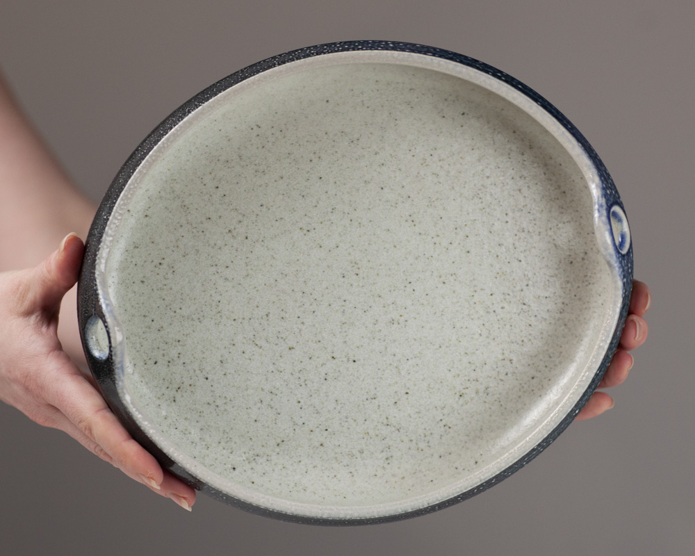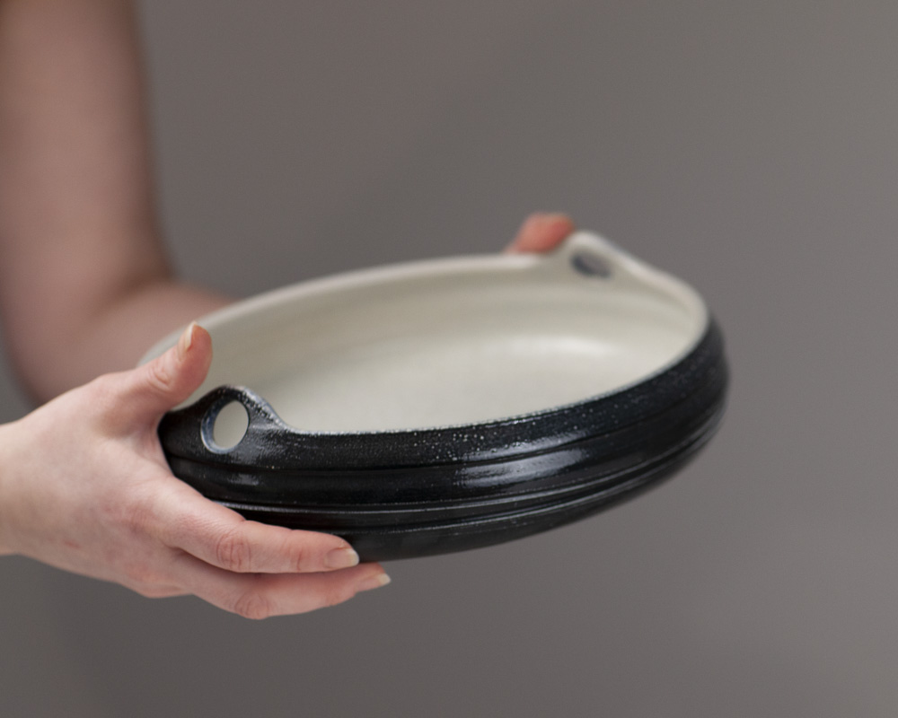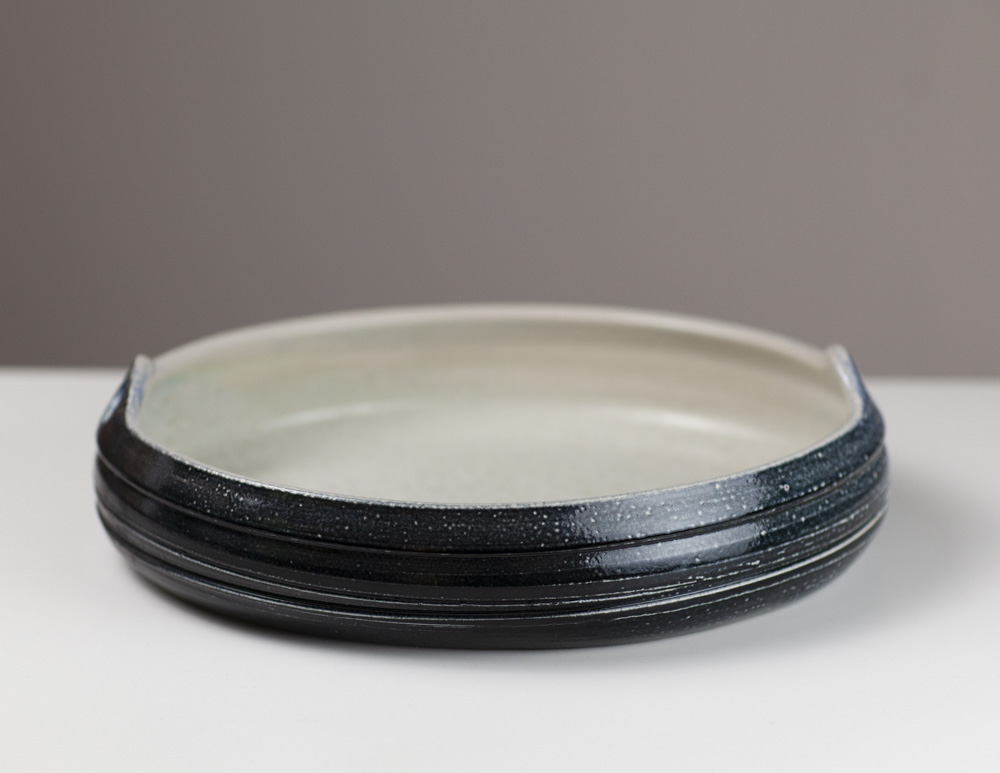 Francis uses stoneware clays and a muted palette of slips and glazes to complement his forms. Firing in a salt kiln gives his desired effects, ensuring a variation across each surface that is not wholly predictable.