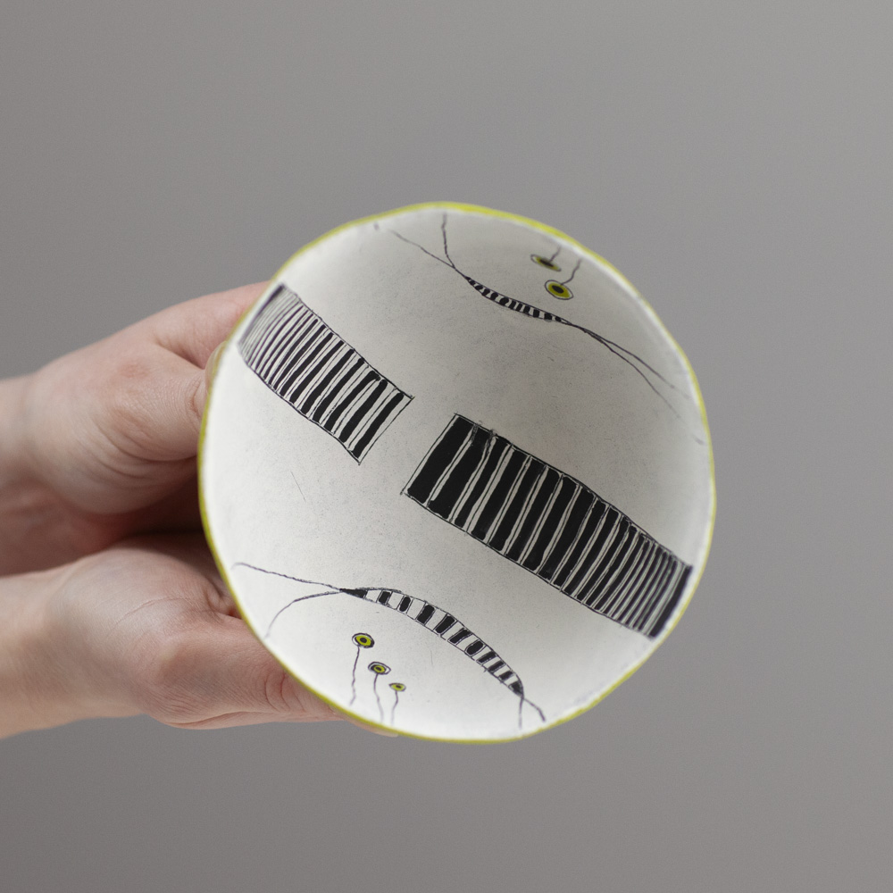 Her work is predominantly hand-built, using coiling, pinching, and slab techniques rather than the wheel, resulting in distinctive sculptural and decorative forms. Known for her strong use of colour, abstract surface design, and expressive shapes, Jane creates pieces that are often earthenware-fired, sometimes burnished or smoke-fired. Her artistic approach has been influenced by time spent in Asia, particularly its emphasis on simplicity and form