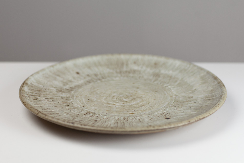 Born September 1974, Tim lives and works in Carmarthenshire, Wales. “Fluidity, fullness and lift are attributes I look to impart into my pots, always trying to bring the softness and suppleness of the material through to the end of the processes. This combined with the alchemic adventure of taking a base material and transforming it into objects of use and beauty is the satisfying goal.” A variety of different voices inform Tim’s work, from East to West, Korea to Marshall, Karatsu to MacKenzie. “I make a variety of forms, ranging from vases and lidded containers to drinking cups and pouring bowls. All work is stoneware and most of it is thrown and turned on a slow turning kick wheel but I also produce various slab built plates and trays. All the work is fired to between 1280°C–1300°C in a gas and wood kiln.”
