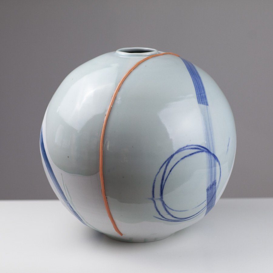 Adam’s work centres on the potters wheel. Traditional eastern forms inspire him, but spontaneity as a means of personal expression is key to his work. The exuberant action of throwing is enhanced by a continued experimentation through process, form and colour. Mark Making is intuitive, sometimes relating to form, or process of making, sometimes it’s part of a personal narrative