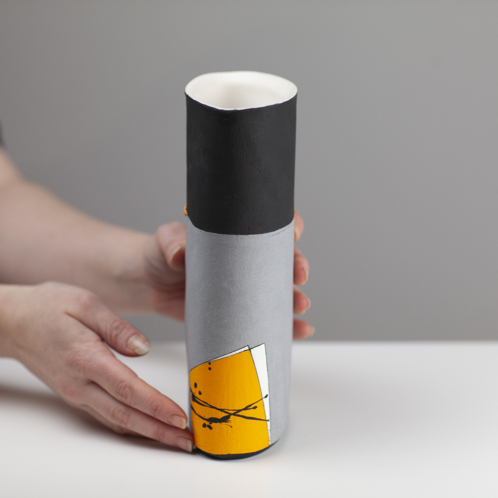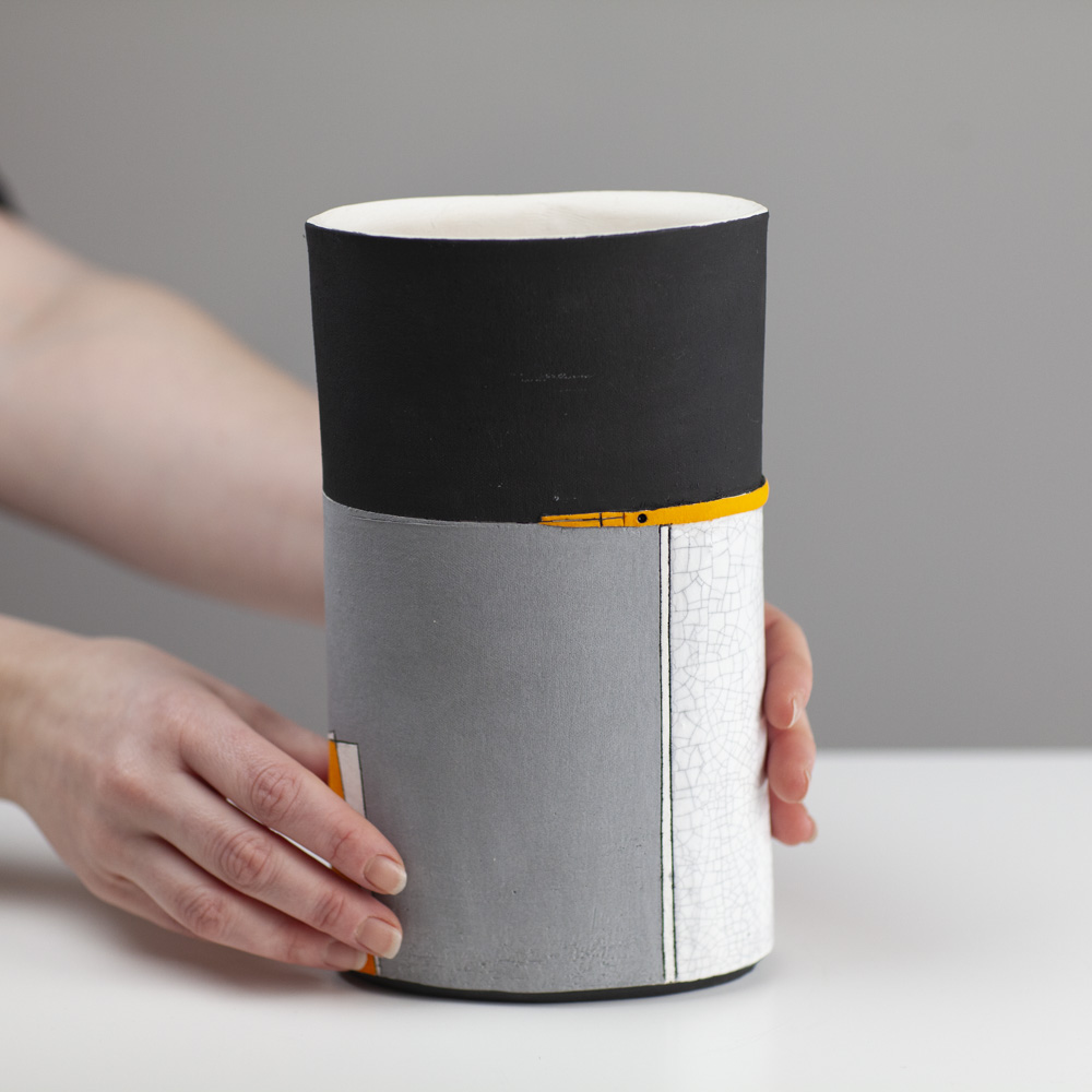 Her work is predominantly hand-built, using coiling, pinching, and slab techniques rather than the wheel, resulting in distinctive sculptural and decorative forms. Known for her strong use of colour, abstract surface design, and expressive shapes, Jane creates pieces that are often earthenware-fired, sometimes burnished or smoke-fired. Her artistic approach has been influenced by time spent in Asia, particularly its emphasis on simplicity and form