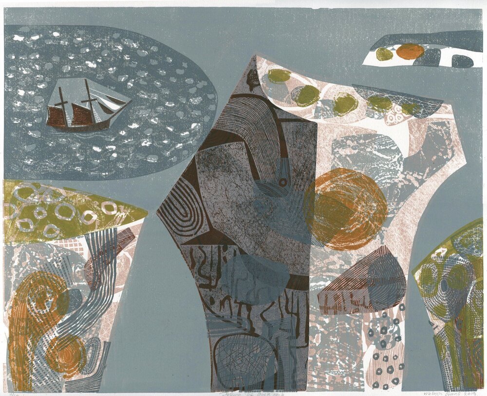 Initially trained as a marine engineer – spending time working on submarines – Melvyn Evans studied illustration at Exeter College of Art and Design, followed by a year at Goldsmiths College, London. He then took up drawing classes at the Royal College of Art under the tuition of Bryan Kneale RA. He became a professional artist, printmaker and illustrator in 1992. Evans has developed a signature style of strong, bold imagery, with inspiration coming from artists such as Edward Bawden, Eric Ravilious, Henry Moore and the St Ives School.