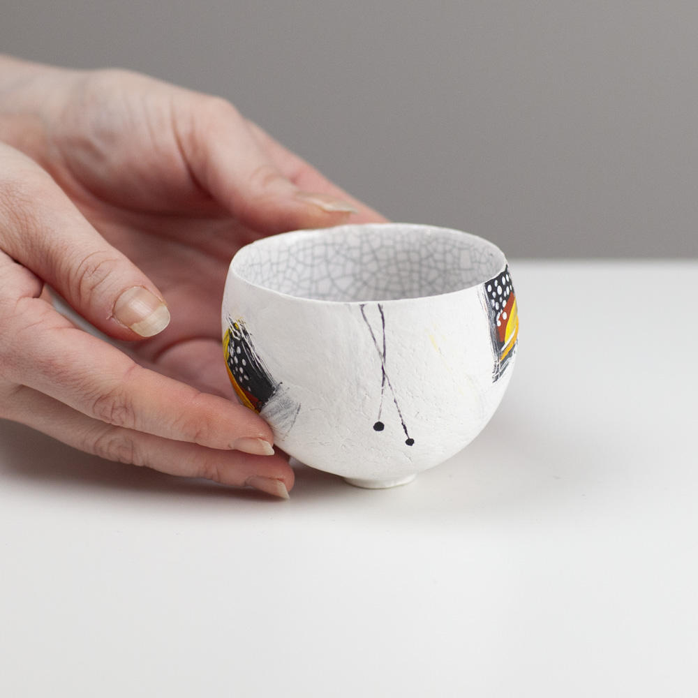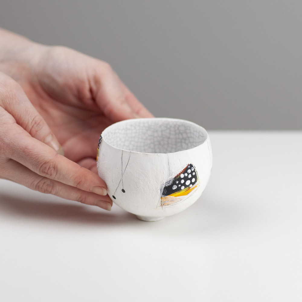 Her work is predominantly hand-built, using coiling, pinching, and slab techniques rather than the wheel, resulting in distinctive sculptural and decorative forms. Known for her strong use of colour, abstract surface design, and expressive shapes, Jane creates pieces that are often earthenware-fired, sometimes burnished or smoke-fired. Her artistic approach has been influenced by time spent in Asia, particularly its emphasis on simplicity and form