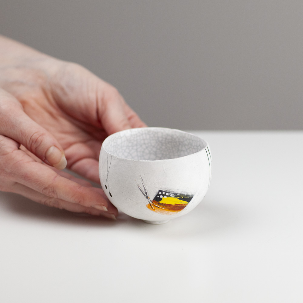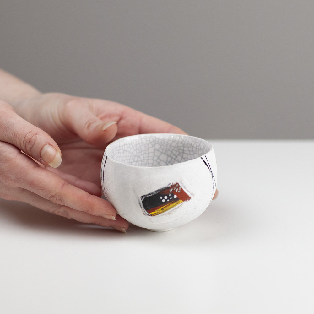 Her work is predominantly hand-built, using coiling, pinching, and slab techniques rather than the wheel, resulting in distinctive sculptural and decorative forms. Known for her strong use of colour, abstract surface design, and expressive shapes, Jane creates pieces that are often earthenware-fired, sometimes burnished or smoke-fired. Her artistic approach has been influenced by time spent in Asia, particularly its emphasis on simplicity and form