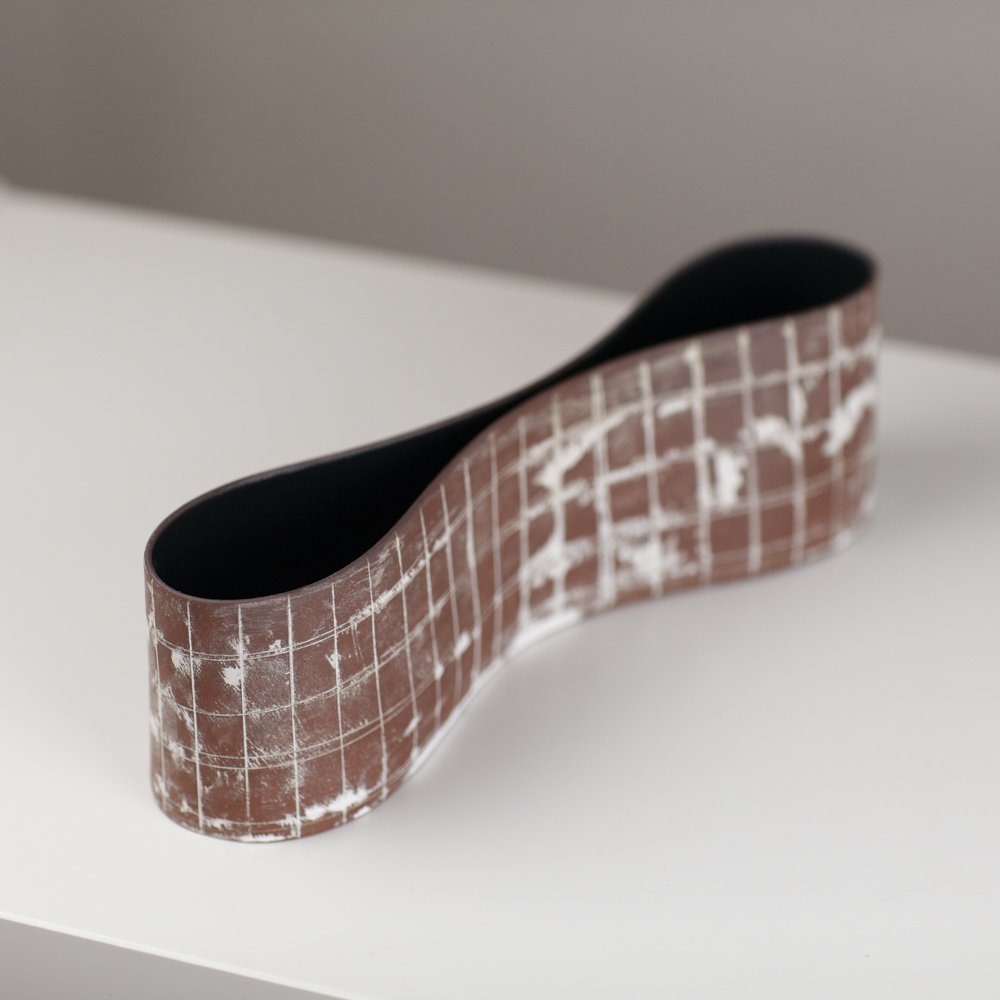 Emily is currently working with both porcelain and red stoneware clay. These contrasting clays provide the bright white, and chocolate brown backgrounds, on which the glazes react. The potter’s wheel is central to Emily’s studio practice, but extends her repertoire of forms by faceting, carving and altering the pots at the leather hard stage. She has developed a range of matt stoneware barium glazes. After graduating with a degree in Ceramics from Bristol Polytechnic in 1987, Emily returned to her home town of London, enjoying working within a shared workshop environment. A move to the countryside in the late 1990’s signalled a change in Emily’s work. Architectural influences gave way to organic ones. The rolling hills and ploughed furrows of North Hampshire were reflected in the carved lines within the pots. Inspiration was also drawn from found objects such as knapped flints and old metal cogs.