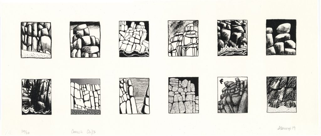 Carry is a painter and printmaker whose subject is the landscape, and often the relationship between the farmed landscape and wildlife. Her main interests are colour and composition, especially within the limitations of hand-made printmaking. Her original serigraphs (screenprints) are made using layers of cut paper stencils, sometimes with a painterly application of ink. Occasionally a preliminary ground of printing starts as a basis for mixed media work with added painting or crayon or pastel.