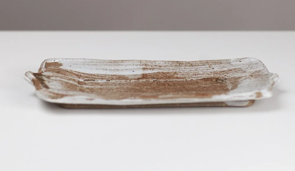 Born September 1974, Tim lives and works in Carmarthenshire, Wales. “Fluidity, fullness and lift are attributes I look to impart into my pots, always trying to bring the softness and suppleness of the material through to the end of the processes. This combined with the alchemic adventure of taking a base material and transforming it into objects of use and beauty is the satisfying goal.” A variety of different voices inform Tim’s work, from East to West, Korea to Marshall, Karatsu to MacKenzie. “I make a variety of forms, ranging from vases and lidded containers to drinking cups and pouring bowls. All work is stoneware and most of it is thrown and turned on a slow turning kick wheel but I also produce various slab built plates and trays. All the work is fired to between 1280°C–1300°C in a gas and wood kiln.”