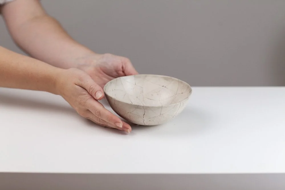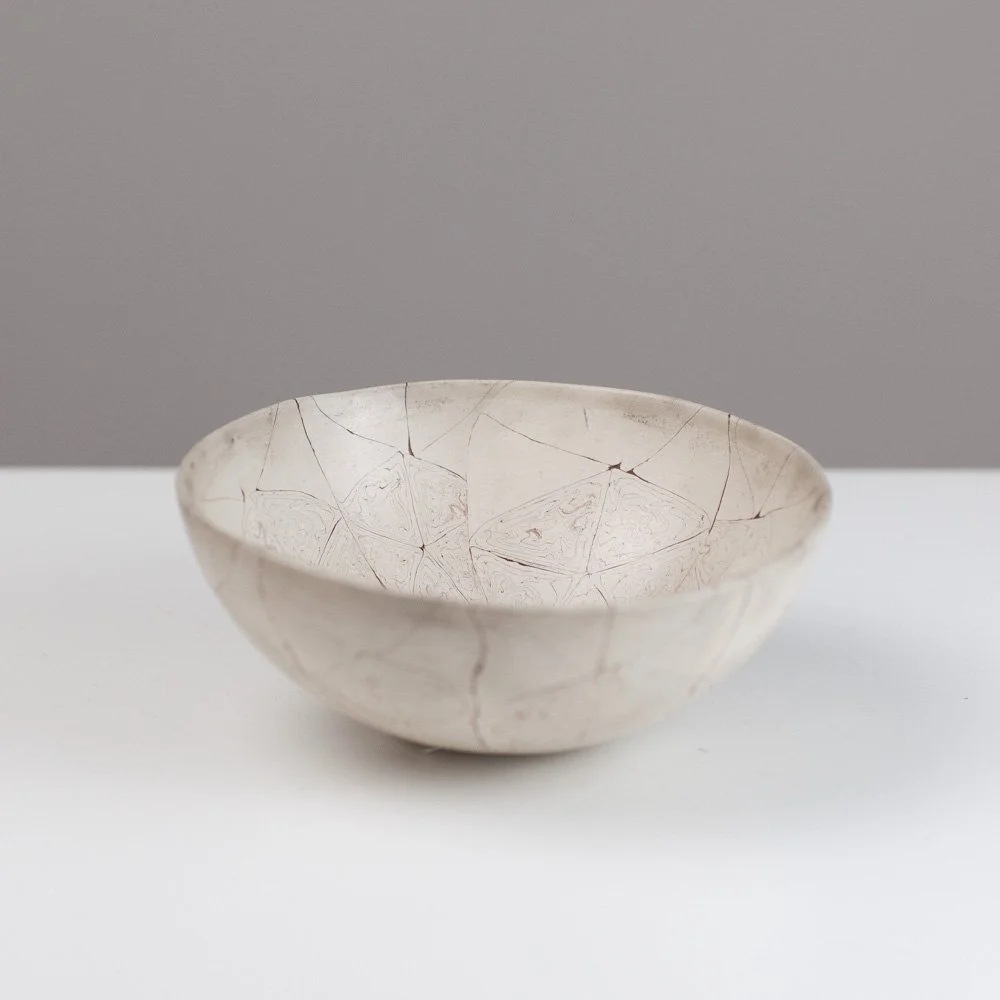 Barbara is a Brighton-based ceramicist, exhibiting across England. During her earlier career in the fashion industry as a designer and pattern cutter, she began to explore clay as an alternative medium to fabric. In fashion, the layering of textiles and the power of the cut merge to find new balances and forms, the biomorphic and geometric held in tension. Her work in clay continues to explore this. Barbara is fascinated by the geometry in nature. Growth and random chaotic forces skew and distort the initial perfect symmetry, leading to biomorphic and irregular forms. ”My ceramics explore the multi-layered effects nature creates via the laying down of strata, weathering and erosion. I endeavour to catch echoes of all this in my work whilst trying to embrace chance, the accidental and, as Henri Bergson said, the unforeseeable novelty.”