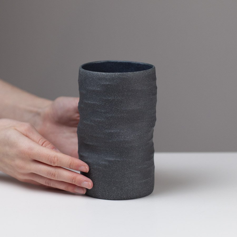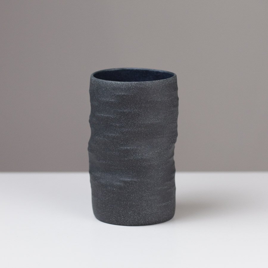 Sally’s ceramics are inspired by her passion for the material. She aims to create a sense of movement and physicality in her pieces; she does this by marking and drawing into soft slabs of clay that are then formed into cylinders and manipulated. This making process allows her to create unique forms with fluid contours and shadows. Natural colours and unglazed surfaces are used to complement the form and provide a subtle tactile quality to her vessels. Her primary material is a grogged porcelain which she then blends with other clays, oxides and stains in order to create her distinct colour palette.