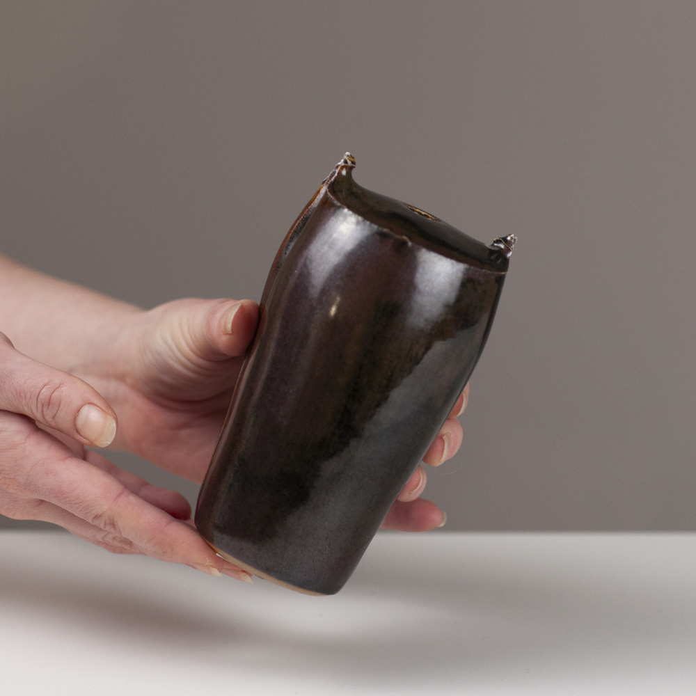 Functional objects are the main concern, pots made for use but also pots that nod to a past function, featuring remnants of utilitarian components now ultimately defunct but repurposed as decoration.