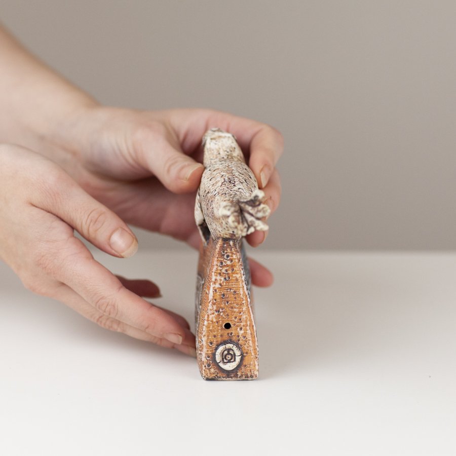 After completing her Fine Art Ceramics (BA Hons) at Exeter College of Art and Design, Blandine taught for five years at colleges in Somerset before setting up her first ceramic studio in 1988. Through a combination of skill and her unique vision, Blandine has not only established her reputation as an artist intent on pushing creative boundaries, but has also gained an enthusiastic following for her hugely collectable one-off sculptural works. The inspiration for most of Blandine’s work begins in the forms of the landscape of her immediate surroundings in North Devon. All of Blandine’s works are unique. No moulds or repeat methods are used in their production. Colour and texture are added using porcelain slips which are stencilled, painted and incised. Oxides and glazes are added after biscuit firing and fired again, to 1240 Centigrade. Small amounts of onglaze enamel and/or metallic lustre are added for the third firing.