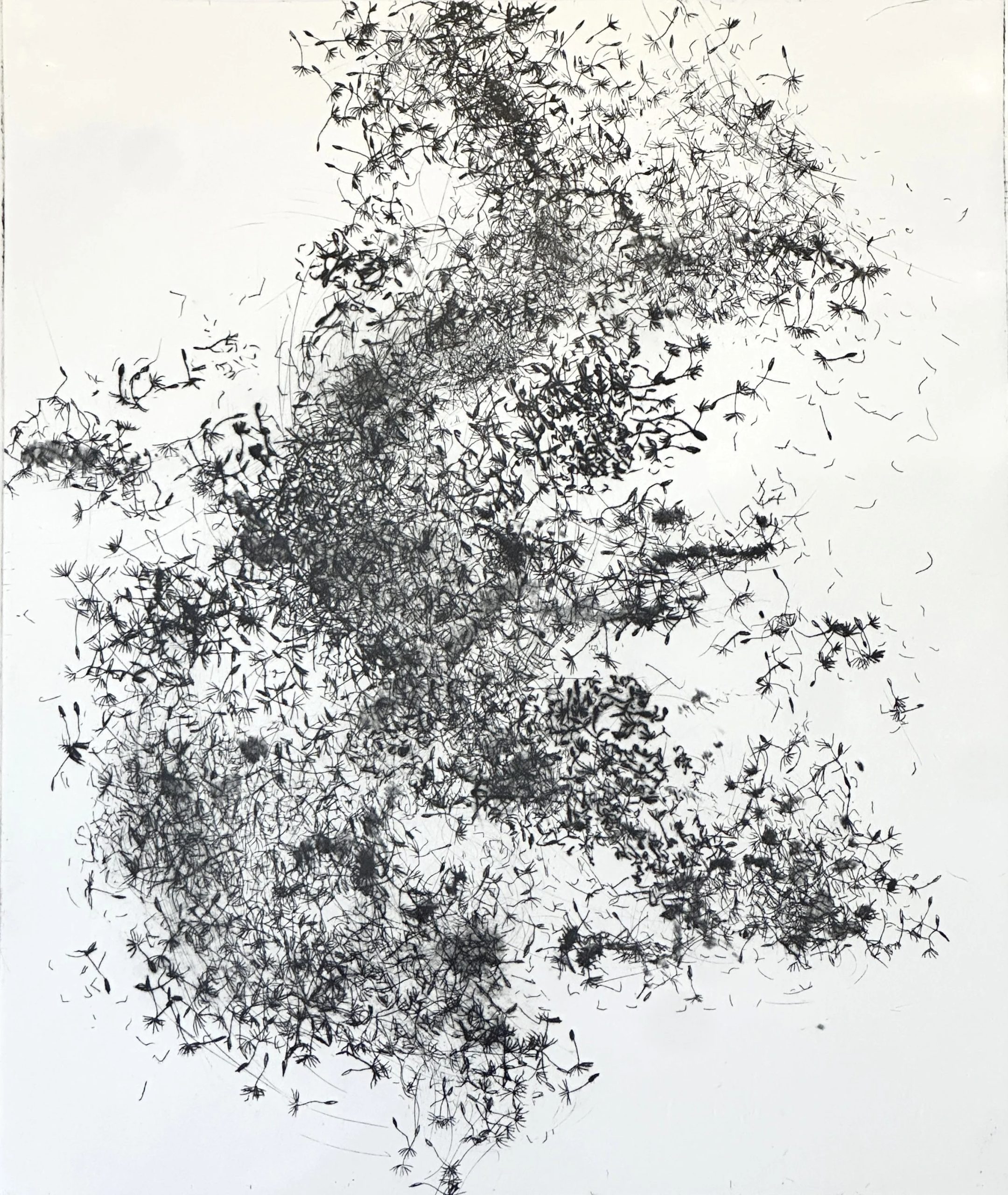 Jo McChesney specialised in print after graduating from Bath Academy of Art in 1985. She travelled to Japan to study Japanese woodblock printmaking, and combines her knowledge of traditional Japanese printing techniques with a distinctly western approach to image making. Her latest prints incorporate dry point engraving besides woodcut. Seasonal change in the natural world is the source of inspiration for her work, focusing on transient moments in time, water and air. Recent work is based on the theme of seeds and dispersal, drawing attention to natural unseen fleeting happenings, evoking the continual change and flux of the natural world.