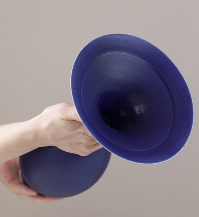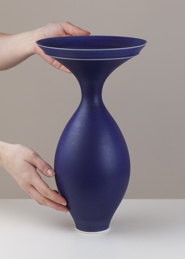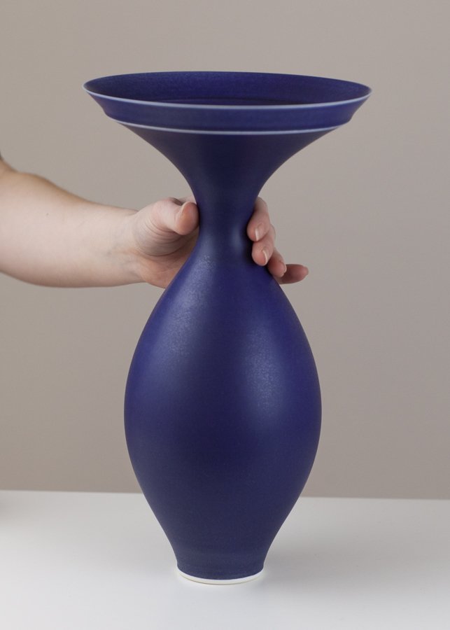 Wide Top Cobalt/Indigo Vase with Cuff by Anna Silverton