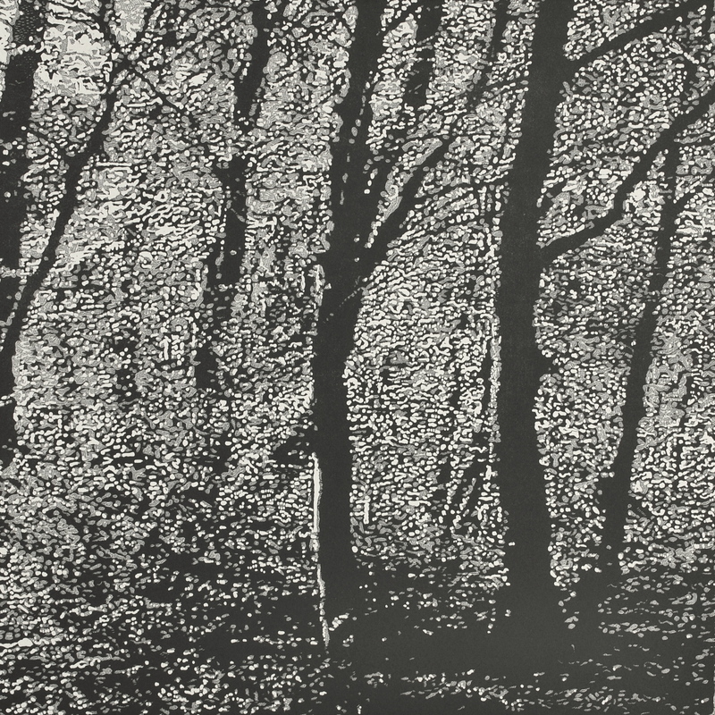 The most recent series by Trevor Price are drypoint and engraved relief prints. Using a polycarbonate 2mm sheet he has carved and scraped the plate with a drypoint needle and a dremmel. This process is very time consuming and unforgiving if mistakes are made. With ink then rolled over the surface, it is sent through an etching press with damp paper over the plate. The artist’s intention is for the viewer to get lost in the mark making and abstractions when viewed close up, but from a distance for the images to become highly representational and almost photographic. There is however no photographic process involved and everything is handmade and printed by hand.